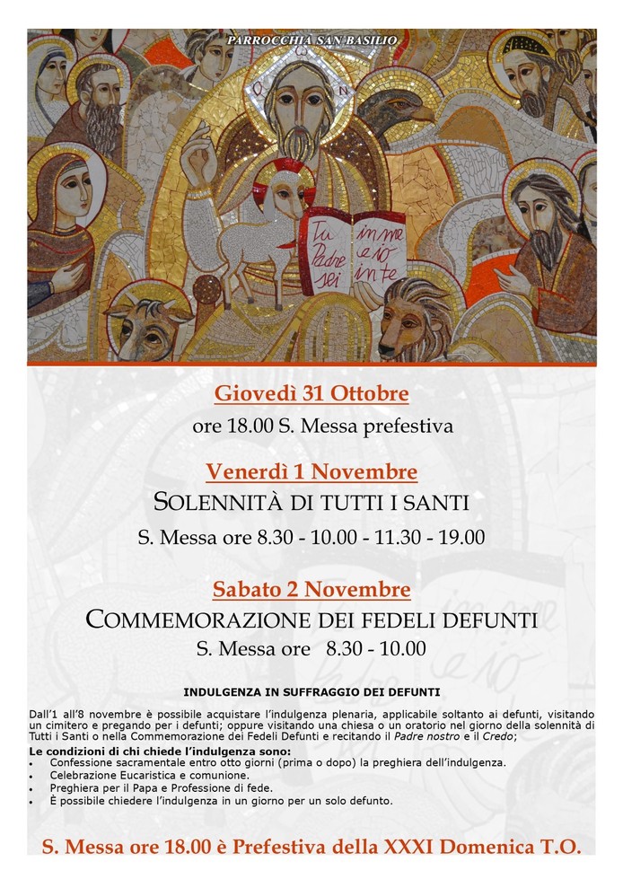 - S. Messa ore 18.00 è Prefestiva della XXXI Domenica T.O.