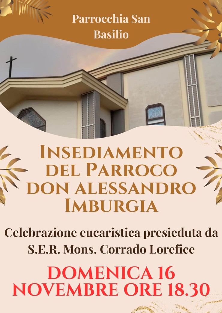 verrą l'Arcivescovo Mons. Corrado Lorefice a presiedere la celebrazione eucaristica in occasione dell'Insediamento del nuovo Parroco don Alessandro.