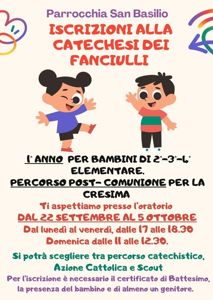 Riprendono le iscrizioni al percorso di catechesi dei fanciulli. Noi non vediamo l'ora di iniziare! Scarica la locandina