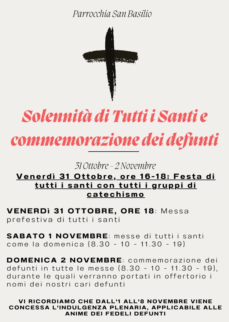 messe di tutti i santi come la domenica (8.30-10-11.30-19)